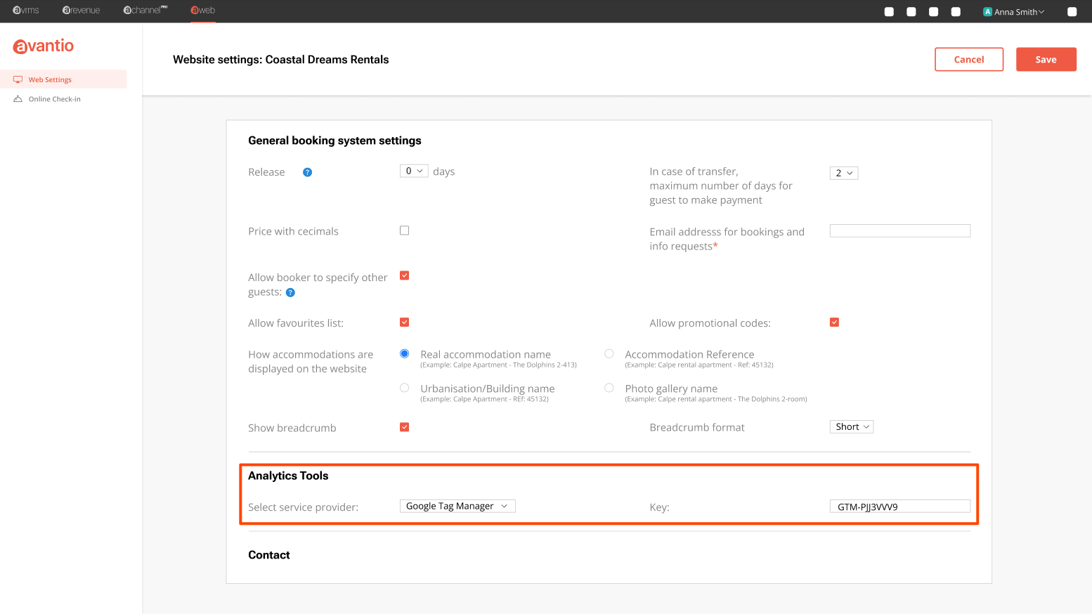 Once your GTM container is set up with the Revyoos tag, you must ensure Avantio knows how to load GTM on your Booking Engine.